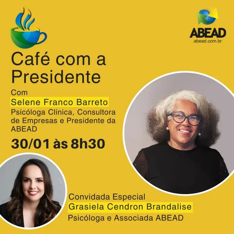 Essa é a chance perfeita de conversar diretamente com nossa presidente, Selene Franco Barreto, e obter insights exclusivos sobre os projetos e estratégias da ABEAD. Prepare suas perguntas e participe de uma conversa enriquecedora!