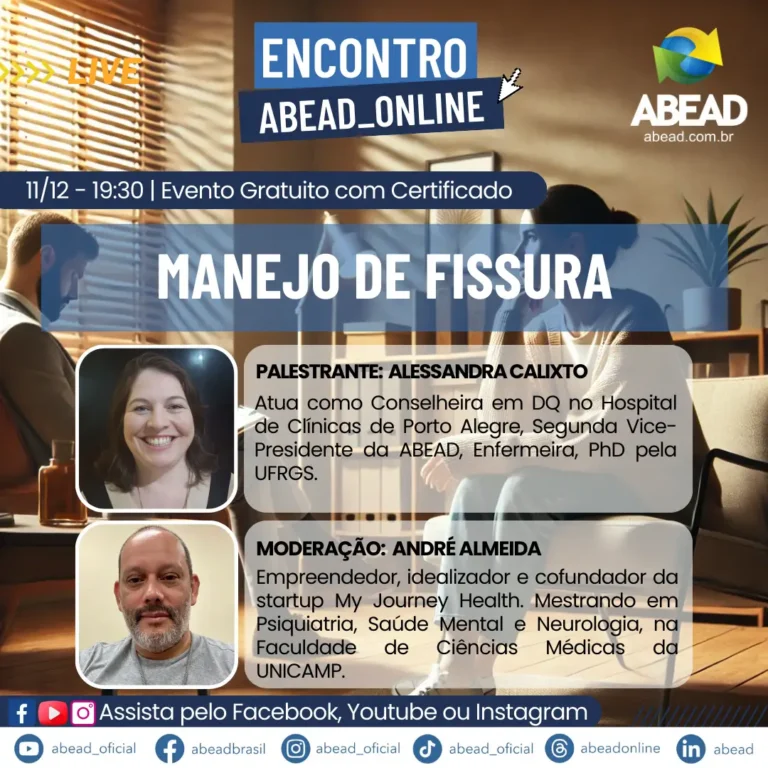 Vamos conversar sobre um tema essencial para a recuperação: Manejo de Fissura . A nossa 2ª Vice-Presidente, Alessandra Calixto, irá compartilhar conhecimentos e estratégias práticas para lidar com os momentos intensos de desejo pela substância.