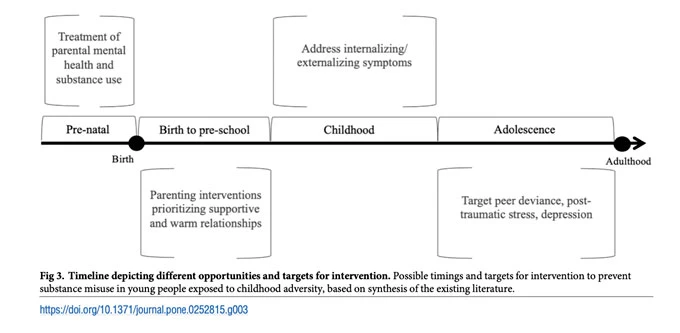² Targets for intervention to prevent substance use in young people exposed to childhood adversity: A systematic review. Grummitt L, Kelly E, Barrett E, Keyes K, Newton N (2021) PLoS ONE 16(6): e0252815. https://doi.org/10.1371/ journal.pone.0252815